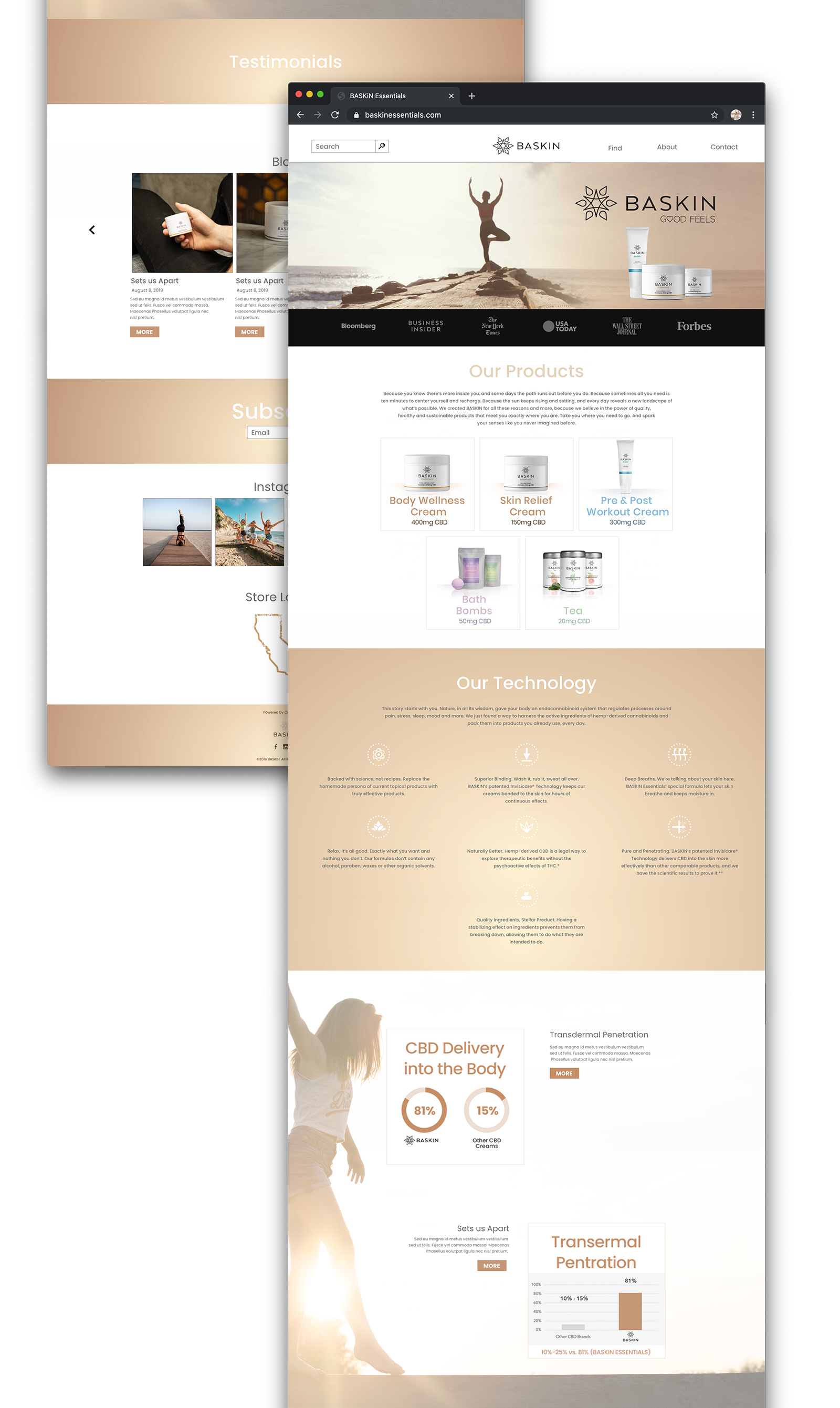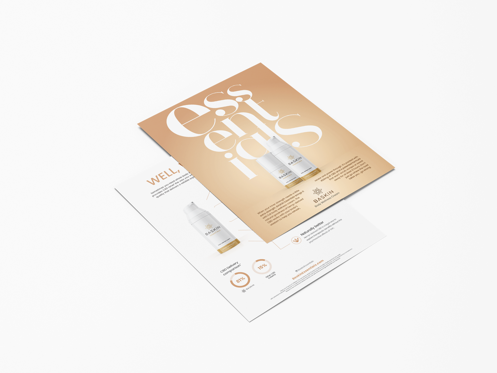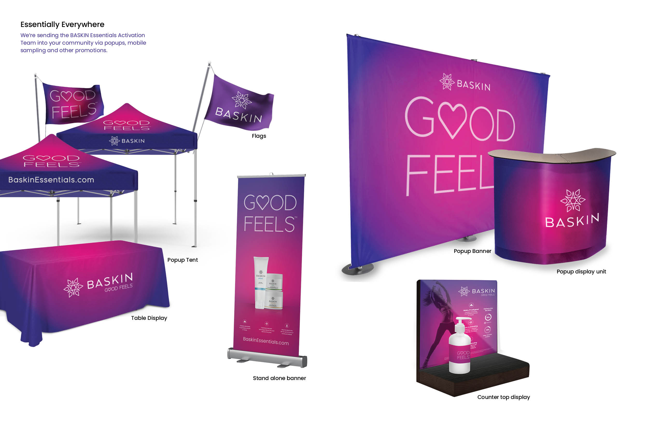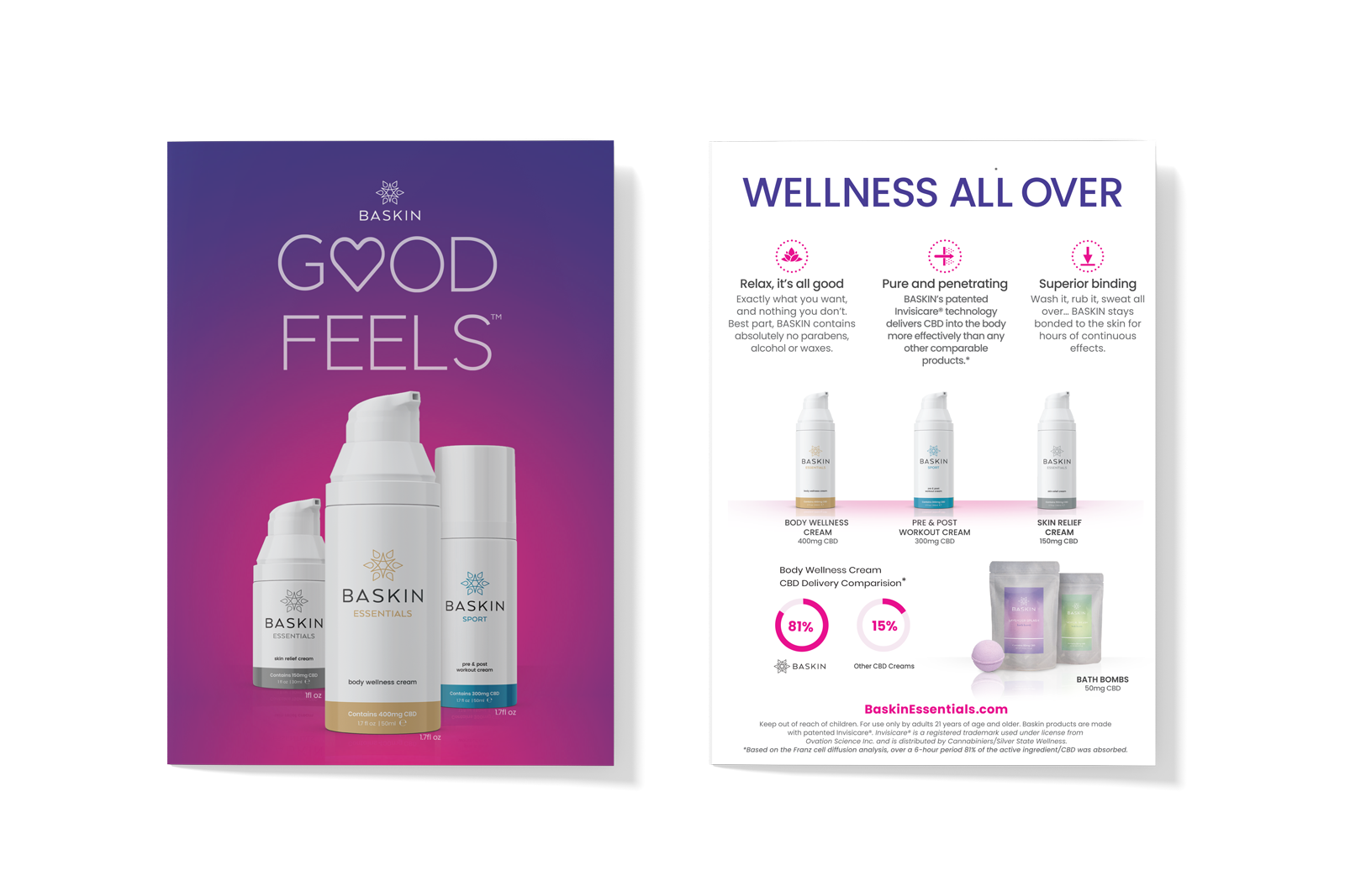 BASKIN Essential’s health and wellness brand with CBD & THC products was in desperate need of rebranding from the ground up. BASKIN wanted a more fresh and care free initiative to reach new demographics per each product in the line. I did endless studies to create the right look and feel for each product within the BASKIN family while creating a new brand guidelines. Simultaneously, I worked with vendors to choose out a sleeker and more sustainable package design, designed new display units, and created new marketing materials. We were able to launch the new and improved BASKIN using the “GOOD FEELS” agenda which emphasizes the need to embrace life and enjoy each moment… BASKIN utilized my marketing materials to host various events including group messages, yoga events, meditations and more. From ideation, logo design, color schemes, type treatments, brand guidelines, layouts, catalog design, banners, POS material, photography, email marketing and website design (pretty much everything under the sun) I was able to recreate BASKIN Essentials with a more elevated, sleek, diverse and communicative.
